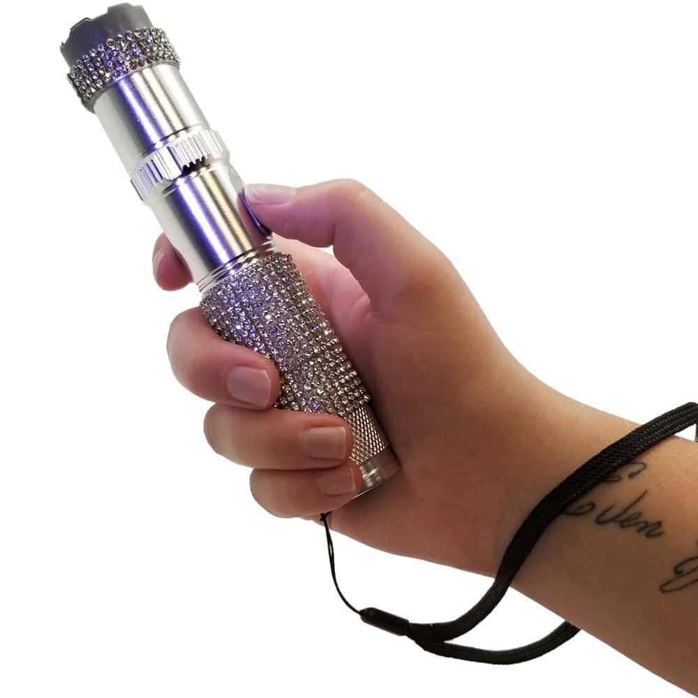 We believe that self-defense should never go out of style. With that in mind, we are happy to introduce our stunning new Jolt RhineStun Flashlight. It might look harmless, but any bad guy who gets too close will quickly find out that it is not the case! For ladies seeking a stylish, high-quality, and economically priced stun gun, the patented JOLT Tactical Stun Flashlight 75,000,000* is the perfect choice. It is made of military-grade aluminum alloy and packs the stun and flashlight power of larger devices into a unit that is less than six inches long.